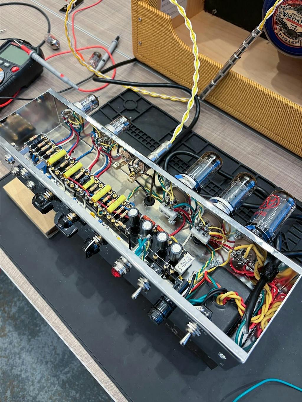 This build will not be your typical 5F1 style build. We will be using top level transformers, capacitors, resistors, wire and hardware. Also, we will cover how to mod this amp to make it unique to your playing style. This class is limited to 8. Keeping the class small will allow us to offer personal assistance to each of the attendees. This class will give you the confidence and knowledge to tackle other builds, basic amp repair and modifications.
